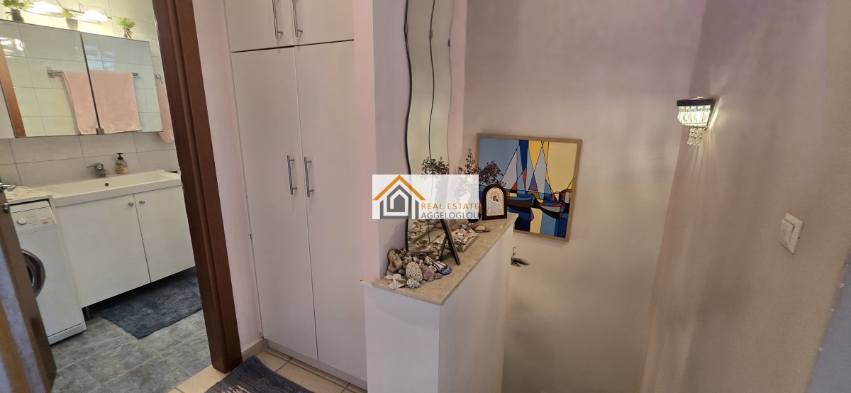 Είναι διαρρυθμισμένο σε 3 επίπεδα. Αποτελείται από 3 υπνοδωμάτια με ντουλάπες, σαλόνι, 2 κουζίνες εξοπλισμένες με ηλεκτρικές συσκευές, 2 μπάνια και 1 WC. Το ακίνητο είναι πλήρως εξοπλισμένο. Επιπλέον διαθέτει κήπο, βεράντα, αποθήκη και θέση στάθμευσης.